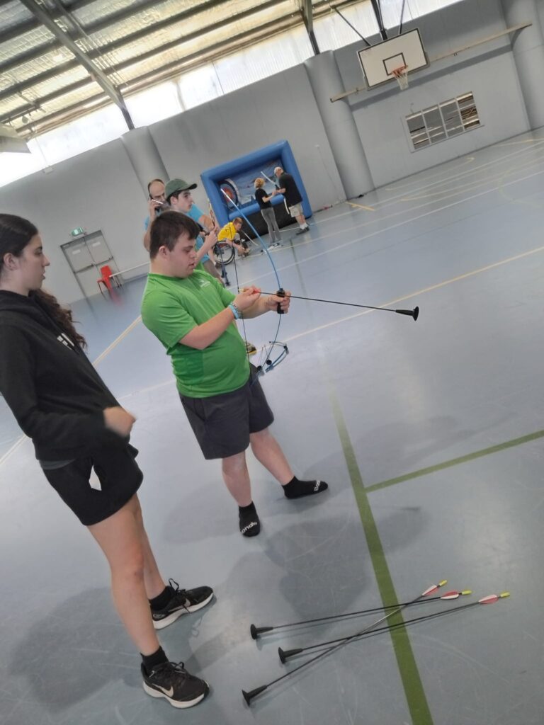 Steve & Elizabeth went to Sydney Academy of Sport to showcase Archery with Cerebal Palsy, where youth members come from all over NSW to learn a skill from the variety of sports on offer, in a safe environment. The excitement from those when they hit the target or knocked off the ball from the cone was infectious and enjoyed by all.